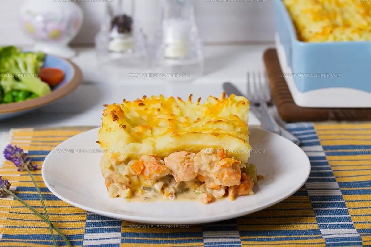 Fisherman's pie originates from Ireland's coastal regions as a savory seafood casserole featuring a creamy mixture of white fish like cod and haddock nestled beneath a golden mashed potato crust.
