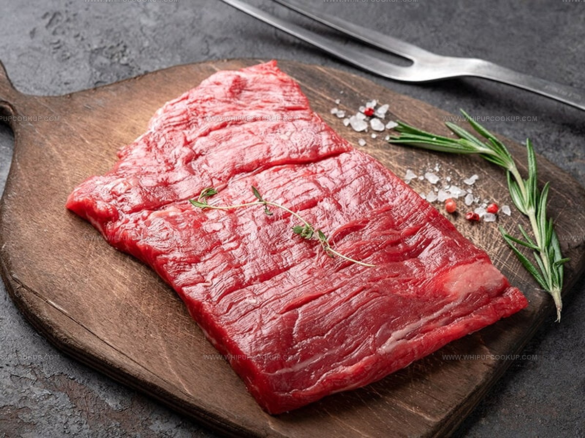 Flank steak comes from the cow's abdominal region under the lean loin, packed with collagen muscles that give it a lean, chewy texture. This cut, also known as London Broil or Jiffy steak, doesn't need trimming due to its naturally low fat content.