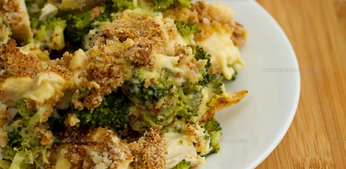 Chicken divan showcases classic mid-century American comfort cuisine featuring tender chicken baked with broccoli in a creamy sauce.
