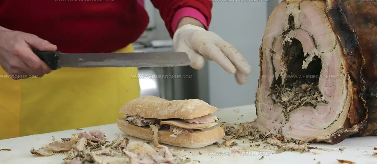 Originating from contested regions of Umbria and Lazio, this sandwich highlights porchetta's rich flavor and crispy skin nestled between soft homemade bread.