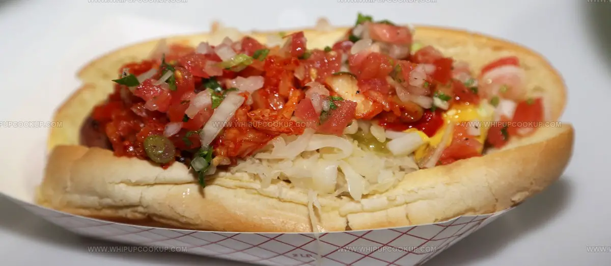 Regional vendors craft this savory treat with a meaty sauce blending tomatoes, vinegar, brown sugar, and cabbage, creating a rich flavor profile that sets it apart from standard hot dog variations.