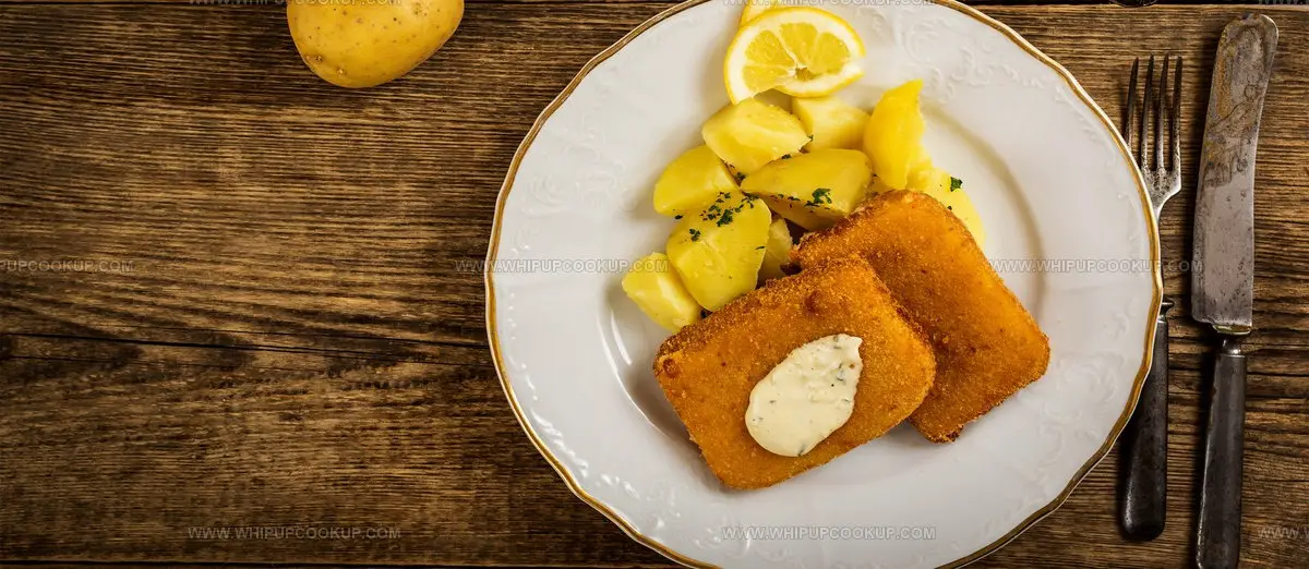 Typically made with Edam cheese, this hearty dish involves coating cheese in eggs, flour, and breadcrumbs before shallow frying to achieve a crunchy exterior and melted interior.