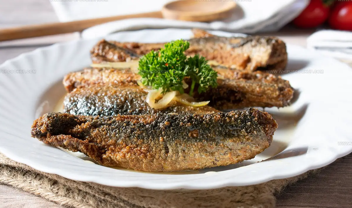 Marinade ingredients like white wine vinegar, onions, sugar, salt, pepper, mustard seeds, and bay leaves infuse the fish with rich, tangy flavors.