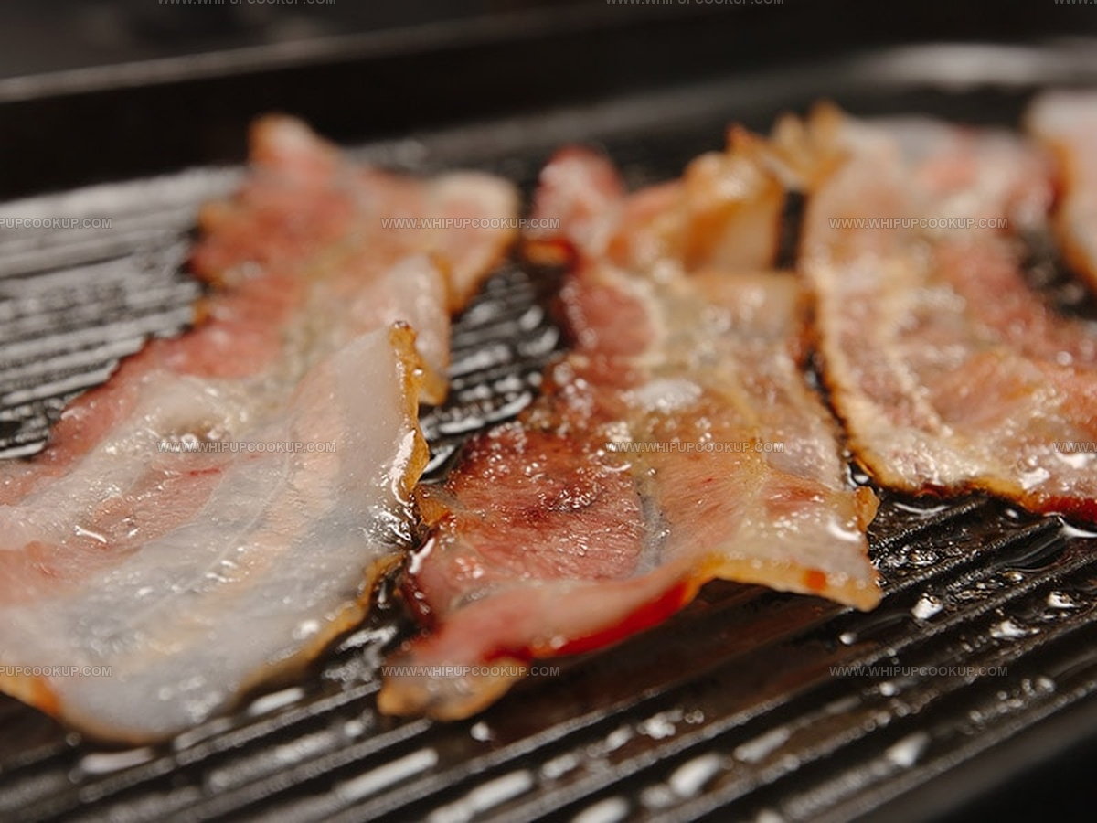 As the fat renders during frying, the bacon shrinks and crisps up, often producing a smoky, crunchy bite.