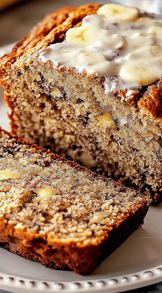 - Slice and serve the banana bread once it has reached room temperature, enjoying the rich, moist texture.