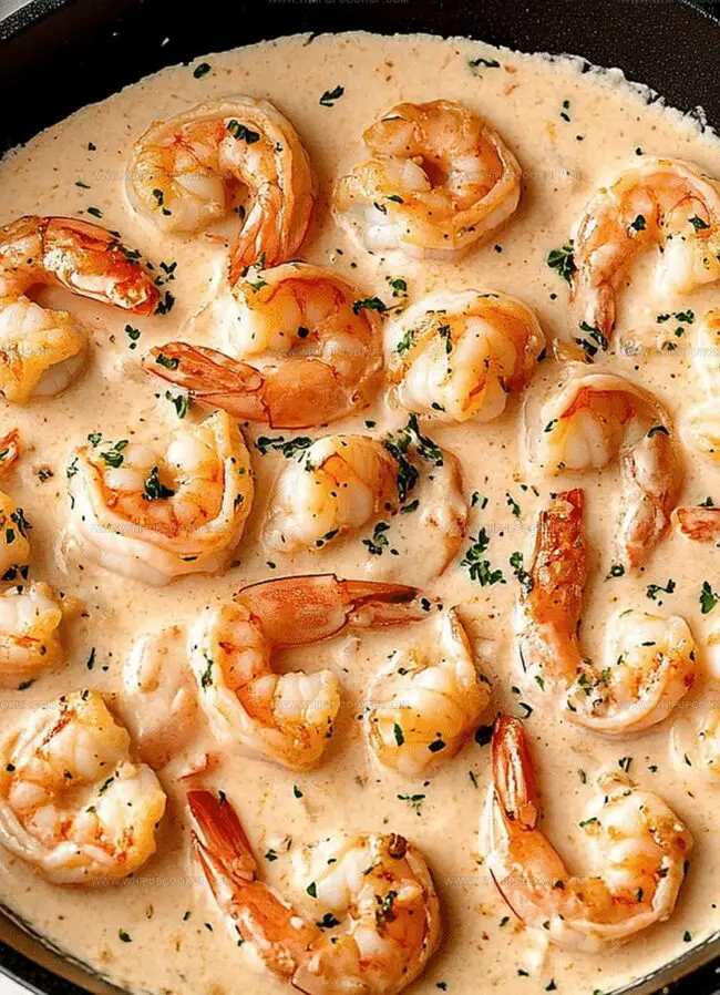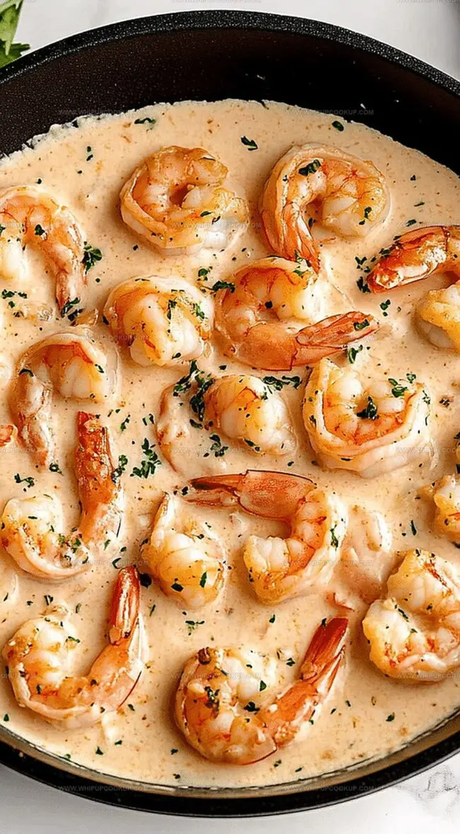 - Gently return seared shrimp to the pan, coating them thoroughly with the creamy garlic sauce. Sprinkle fresh chopped parsley over the top for a vibrant finish and immediate serving.