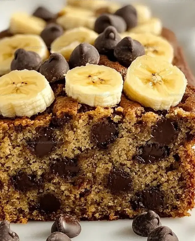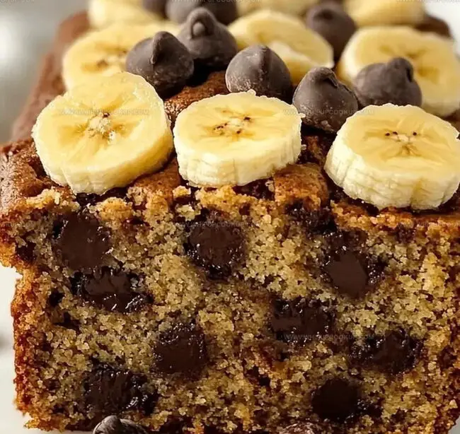 Chocolate chips add delightful bursts of richness throughout each slice.