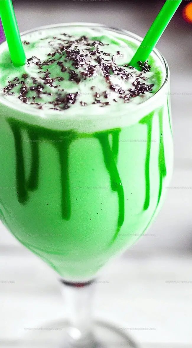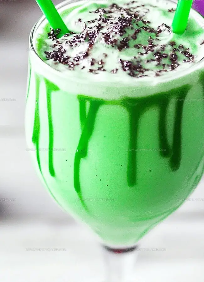 - Carefully transfer the green milkshake into a tall glass, leaving space at the top for decorative toppings.
