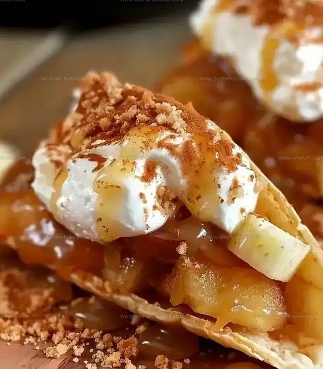 Indulgent apple cheesecake tacos blend Mexican dessert charm with creamy New York style, creating a delightful fusion of crisp tortillas and sweet autumn flavors. Cinnamon-kissed apples and rich cream cheese fill golden shells, promising a delectable treat you’ll savor with each delicious bite.