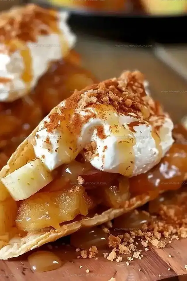 Crispy tortillas wrap around a delightful apple cheesecake filling that promises a sweet adventure.