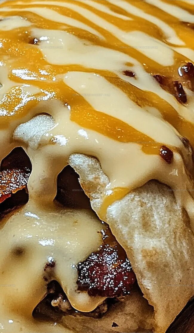 Bacon Cheeseburger Burrito With Pile Of Bacon And Creamy Cheese Sauce Recipe