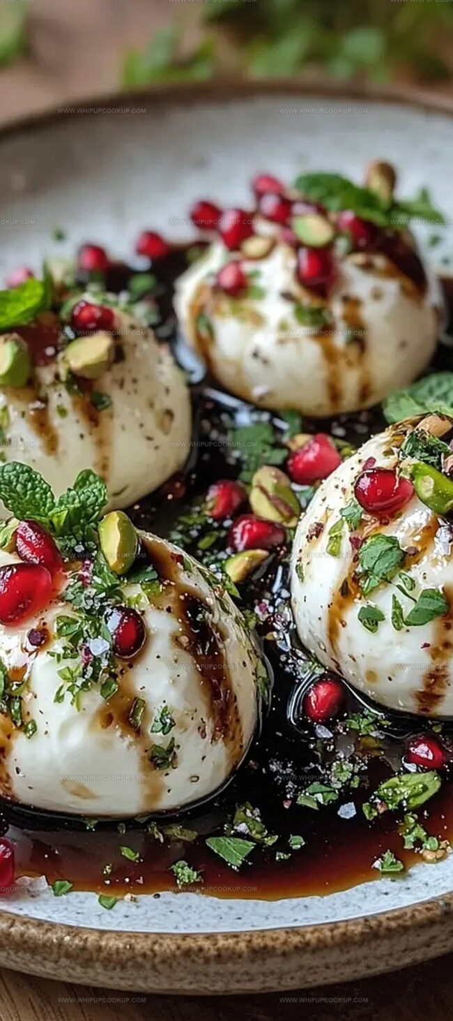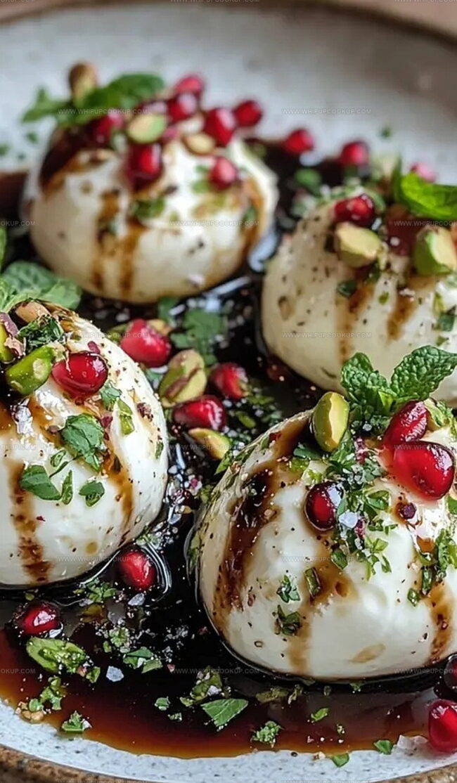 - Scatter vibrant crimson pomegranate seeds across the cheese, creating a stunning color contrast and bursting jewel-like texture.