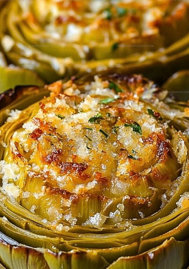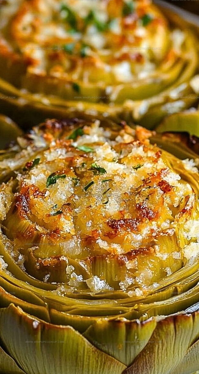 - Serve immediately after baking to enjoy the crispy, golden-brown stuffing and tender artichoke leaves.