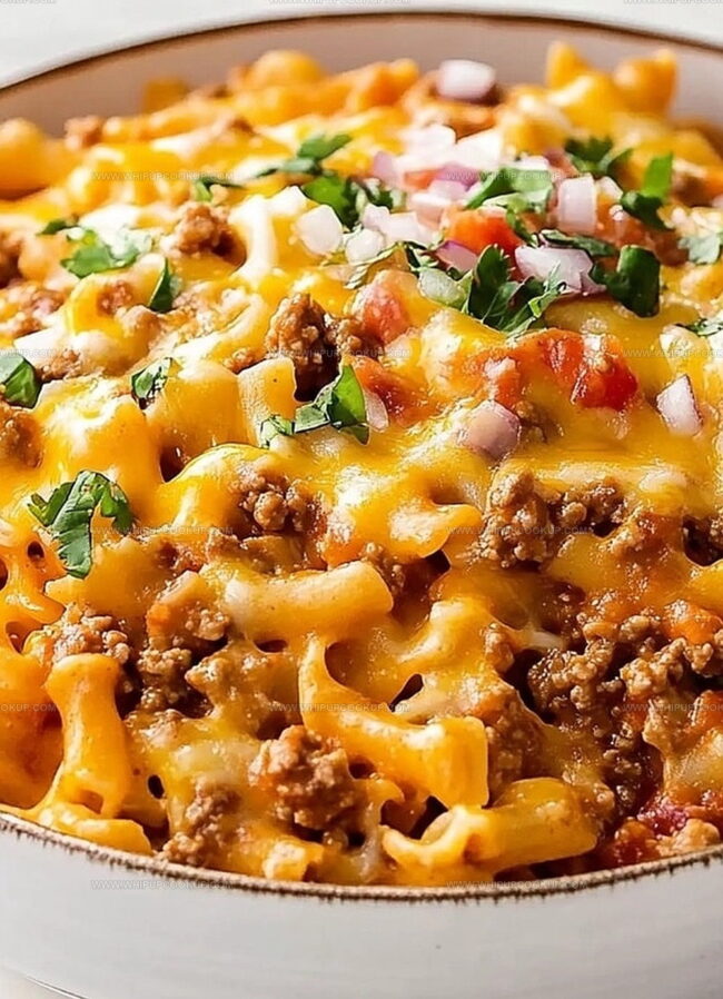 Craving comfort with a Mexican twist? Cheesy taco pasta brings zesty flavors and creamy goodness to your dinner table. Spicy ground beef, melted cheese, and perfectly seasoned pasta create a quick, satisfying meal you’ll devour in minutes.
