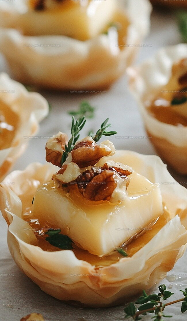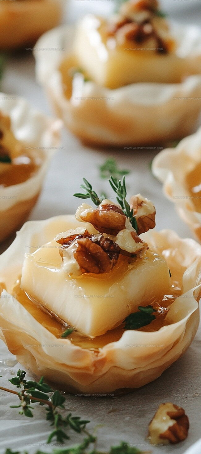 - Once removed from the oven, enhance the cups with a scattering of toasted nuts, adding a delightful crunch and nutty undertone. For an elegant finishing touch, delicately garnish with fresh thyme or rosemary sprigs, which will introduce a subtle herbaceous note to the appetizer.
