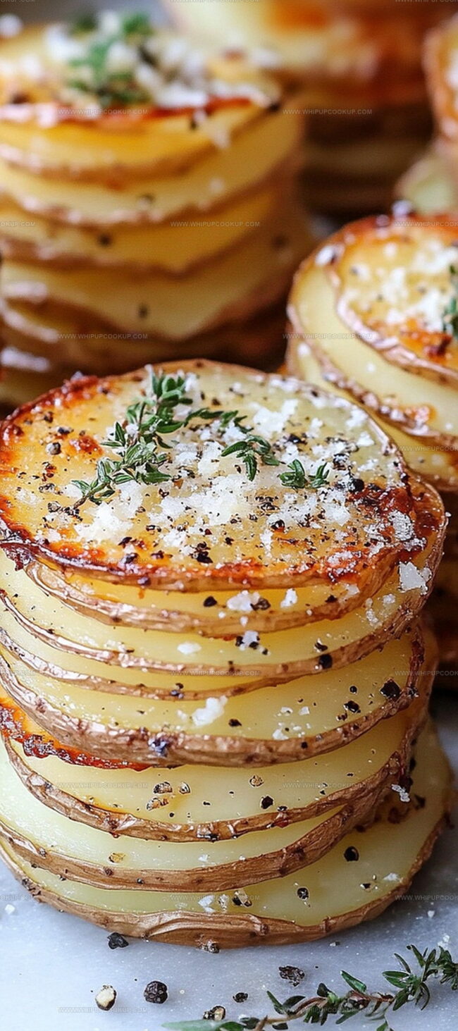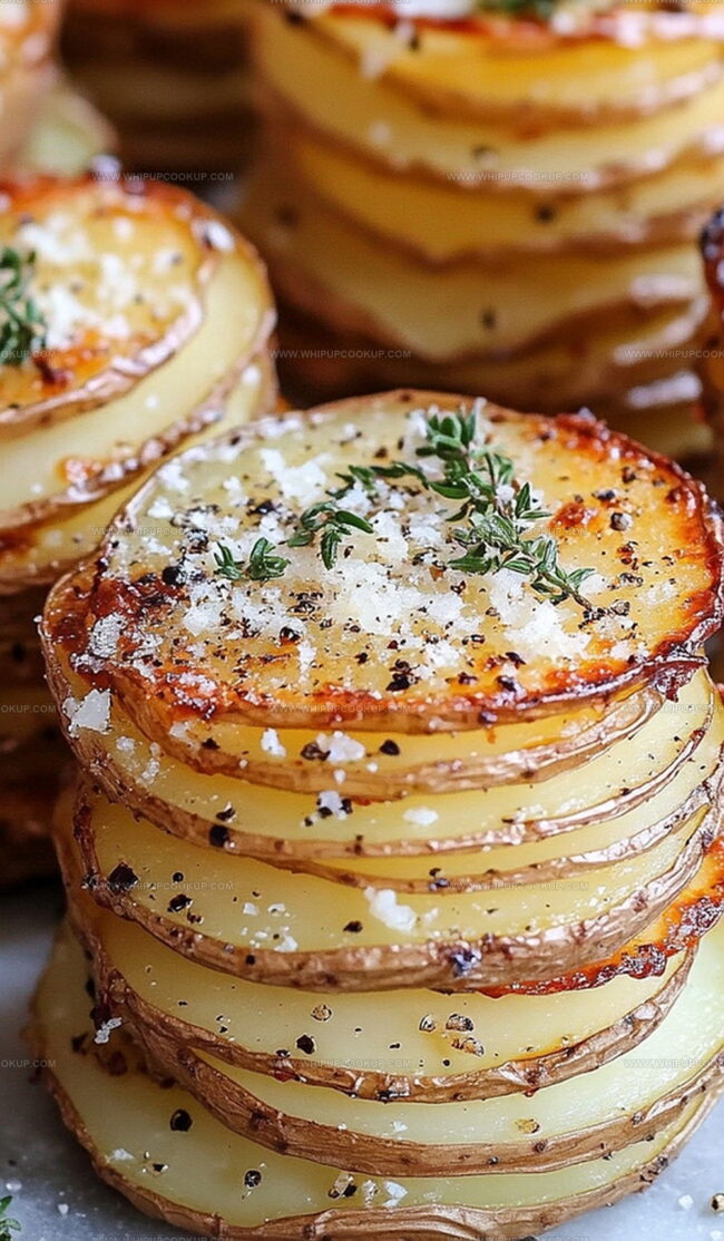 - Slice potatoes uniformly to ensure even cooking and consistent crispy texture throughout each stack.