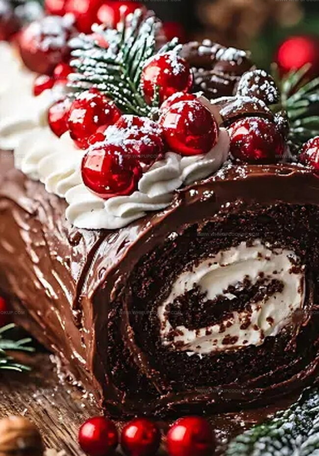 Rich chocolate Christmas roll cake delivers festive joy with each delightful slice. Smooth cream filling and elegant chocolate sponge create a delectable holiday dessert you’ll savor and share with loved ones.
