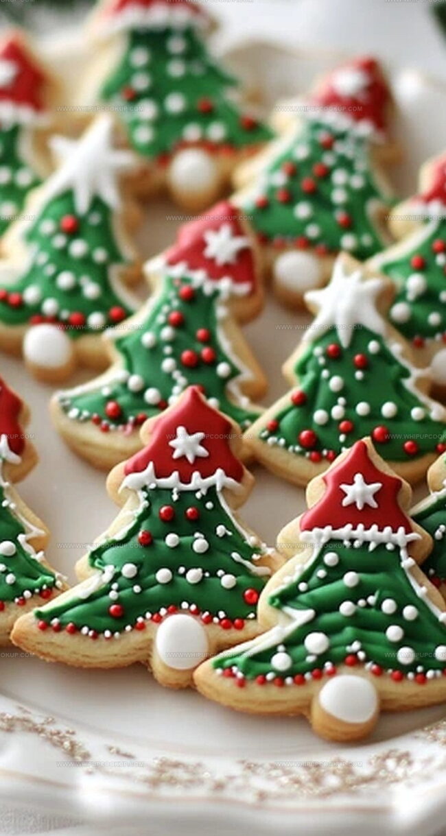 - Embellish cookies using precision piping techniques: outline tree form with verdant hues, accent with crimson and ivory details. Sprinkle decorative elements while surface remains receptive and glistening.