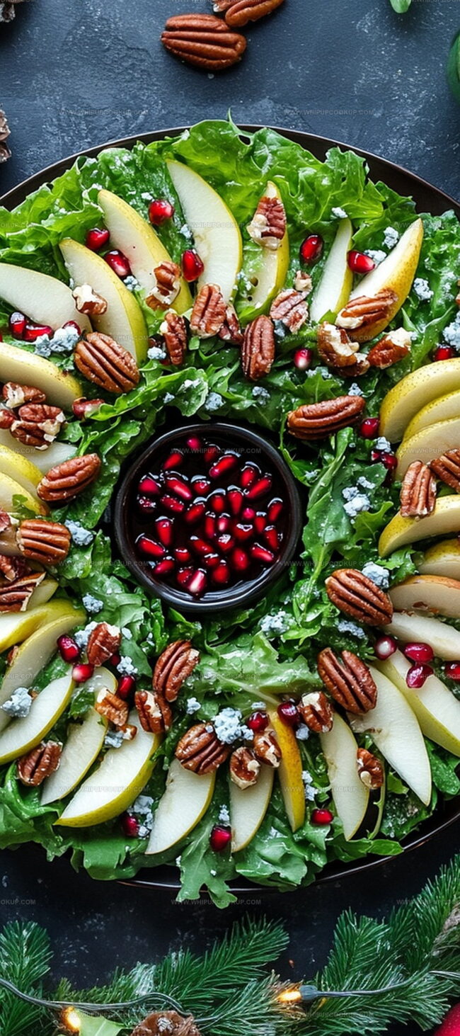 Christmas Wreath Pear Salad with Pomegranates & Pecans Recipe
