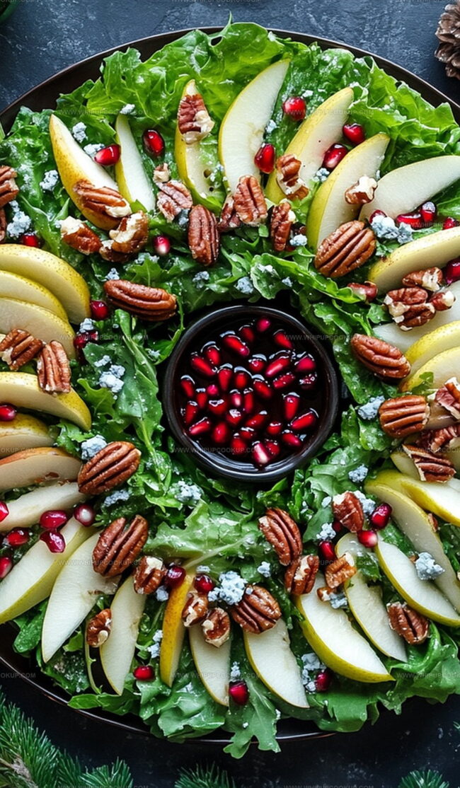 Festive Christmas wreath pear salad brings holiday cheer to your table with elegant layers of sweet pears, tangy pomegranates, and crunchy pecans. Seasonal colors and fresh ingredients create a delightful centerpiece you’ll savor during winter celebrations.