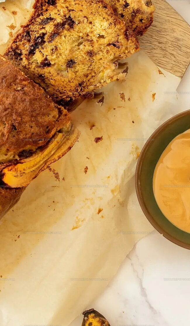 - Slice and serve the banana bread, optionally spreading with butter or cream cheese for an extra indulgent experience.