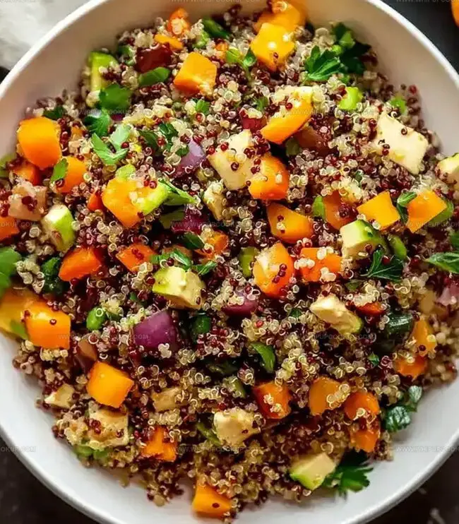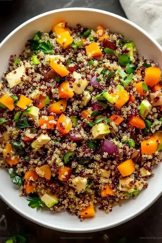 Crisp autumn winds inspire this fall harvest quinoa salad, blending roasted seasonal vegetables with nutty quinoa and maple-kissed dressing. Earthy flavors and colorful ingredients create a wholesome meal that celebrates harvest bounty, inviting you to savor each delightful bite.