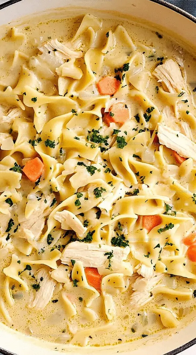 Hearty and irresistible, the dish combines tender chicken with velvety sauce and perfectly cooked noodles.