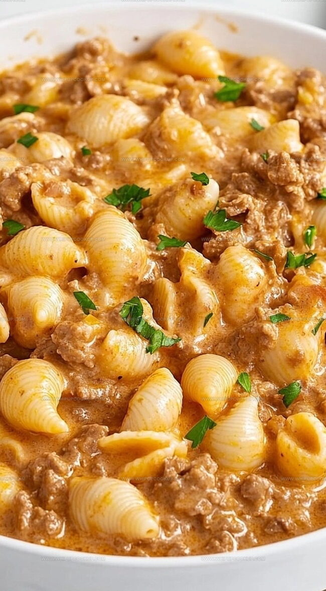 Comfort meets culinary magic in this irresistible creamy beef and shells recipe that promises pure satisfaction.