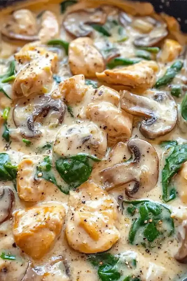 Main Protein:Seasoning Group:Cooking Fat Group:Vegetable Group:Liquid and Dairy Group:Optional Flavor Enhancers:Garnish Group:Instructions for Mushroom Spinach Chicken Skillet