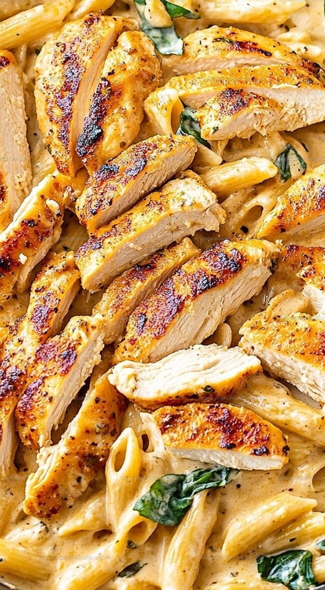 Comfort meets culinary magic in this irresistible creamy garlic chicken pasta that promises to melt hearts and tantalize taste buds.