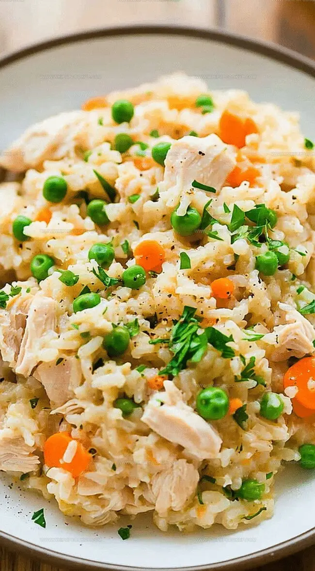 The rice absorbs rich, savory flavors, creating a creamy and delectable one-pot meal.