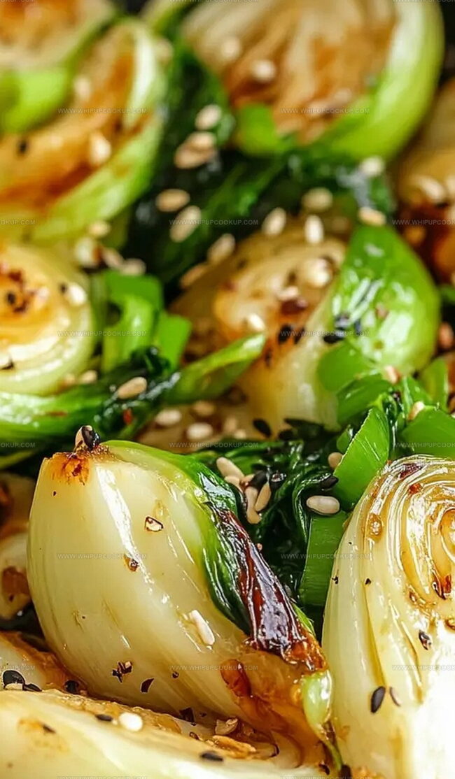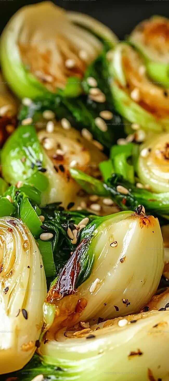 Fragrant garlic and soy glazed pan-seared bok choy invites culinary adventurers to explore bold Asian-inspired flavors. Crisp green leaves caramelize beautifully, delivering a quick side dish that will elevate any meal with its rich, umami-packed profile.