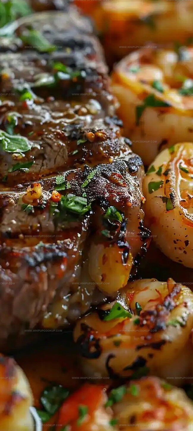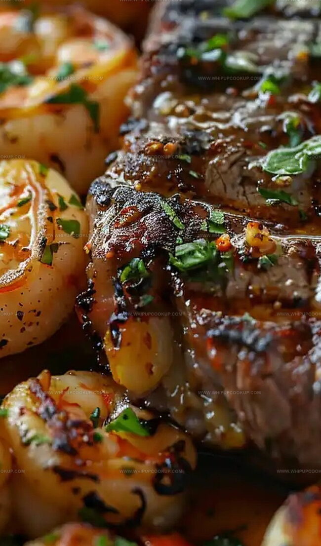 Sizzling Garlic Butter Grilled Steak and Shrimp delivers a mouthwatering coastal fusion of land and sea. Succulent seafood and perfectly charred beef mingle with rich garlic butter, promising a luxurious dining experience you’ll savor with every delectable bite.