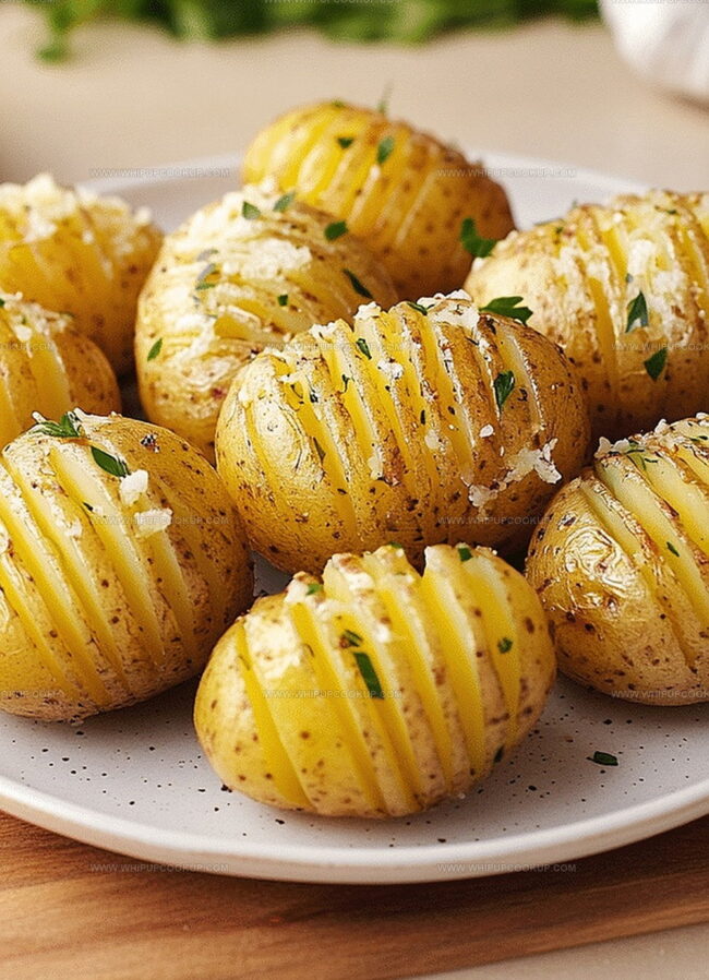 - Create accordion-style cuts in each potato using wooden spoons as cutting guides, ensuring you don’t slice completely through the potato.