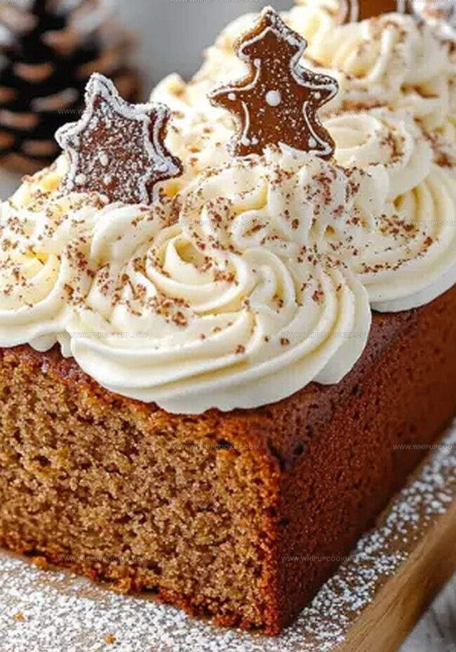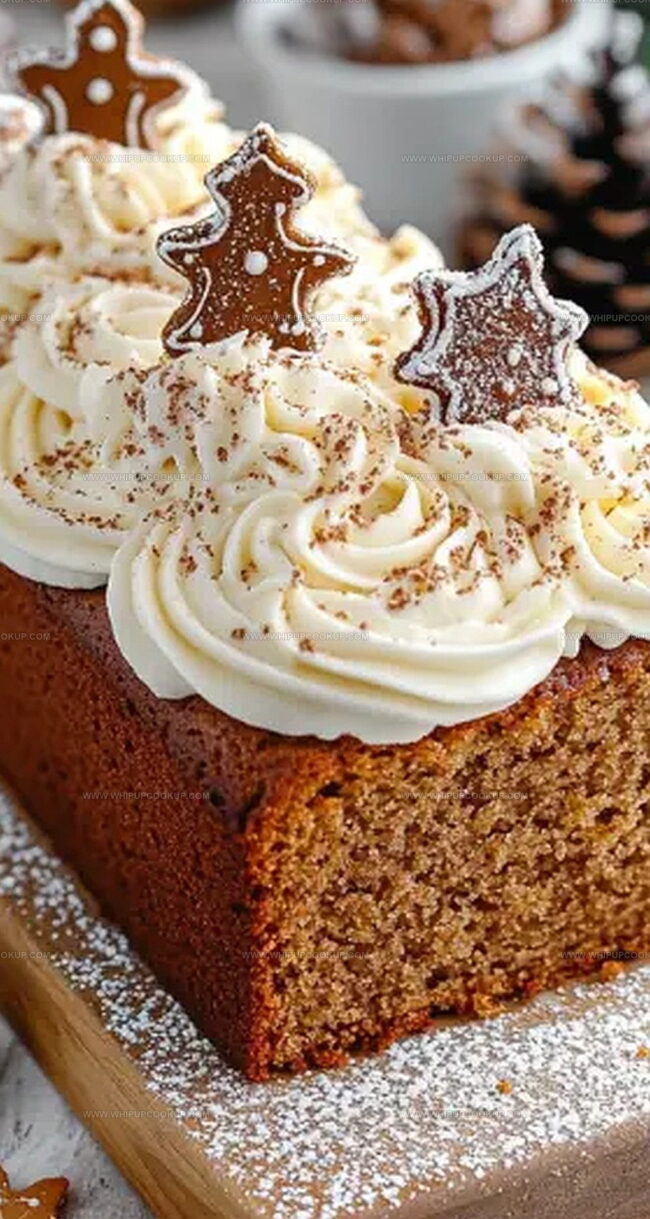 Generously spread buttercream over the cooled cake. Sprinkle with a dusting of powdered sugar and cinnamon. Optional: Garnish with tiny gingerbread cookies for extra charm.