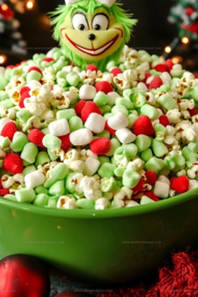 Allow the Grinch Popcorn to cool for approximately 5 minutes. The marshmallow coating will slightly harden, creating a delightful crunch. Serve immediately and watch everyone’s eyes light up with holiday cheer.