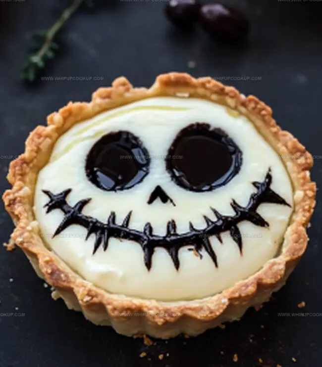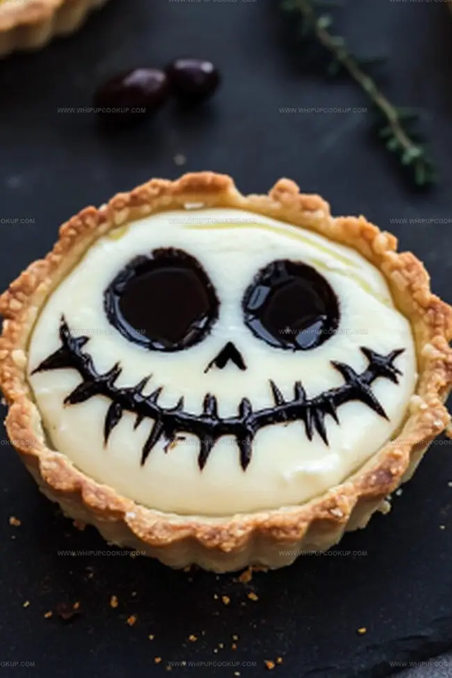 Spooky Halloween jack skellington ricotta olive tarts bring whimsical nightmare before christmas vibes to your festive table. Creamy ricotta and bold olive flavors dance together, creating a playful appetizer that delights guests with Tim Burton-inspired charm.
