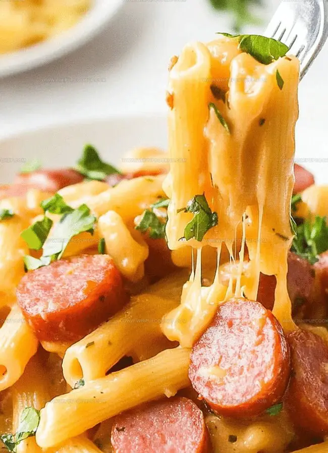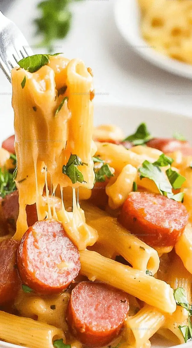 - Reintroduce reserved kielbasa, folding gently into the cheesy pasta mixture. Let sit for 1-2 minutes to allow flavors to meld before serving hot.