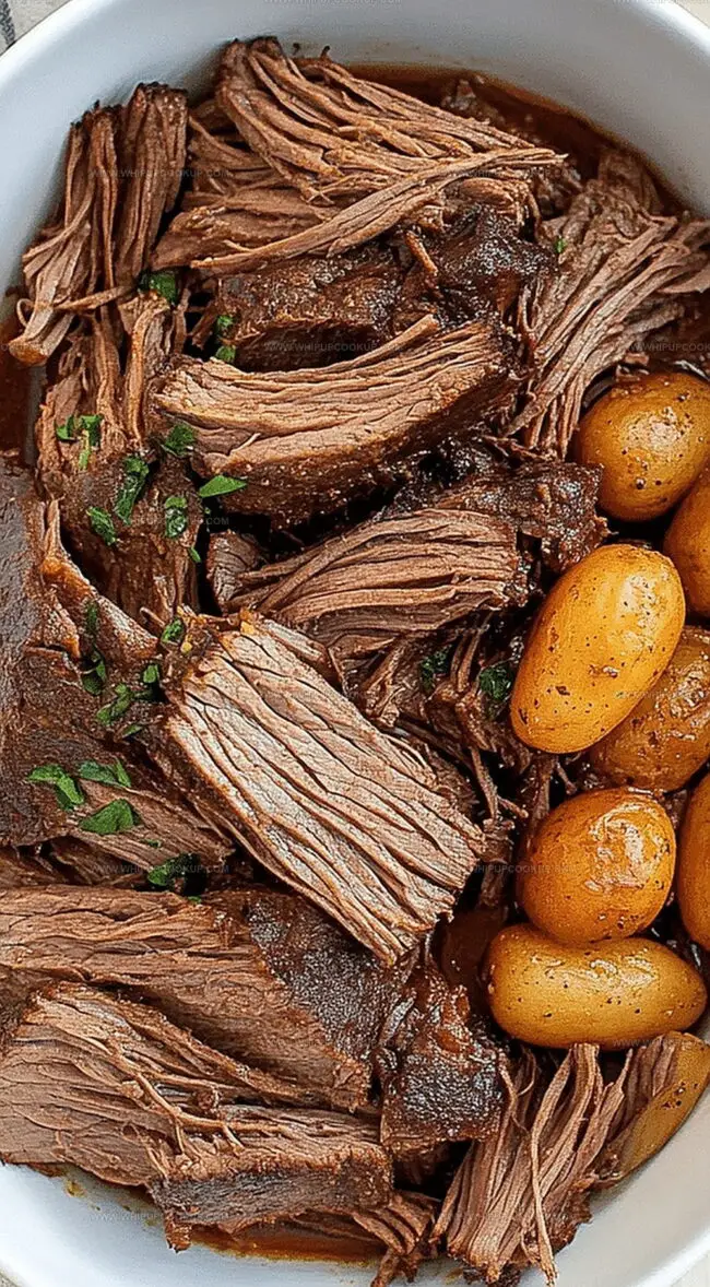 - Artfully shred the roast into rustic chunks, drizzle with the rich gravy, and garnish with fresh herbs for a stunning presentation that’s as delicious as it is beautiful.