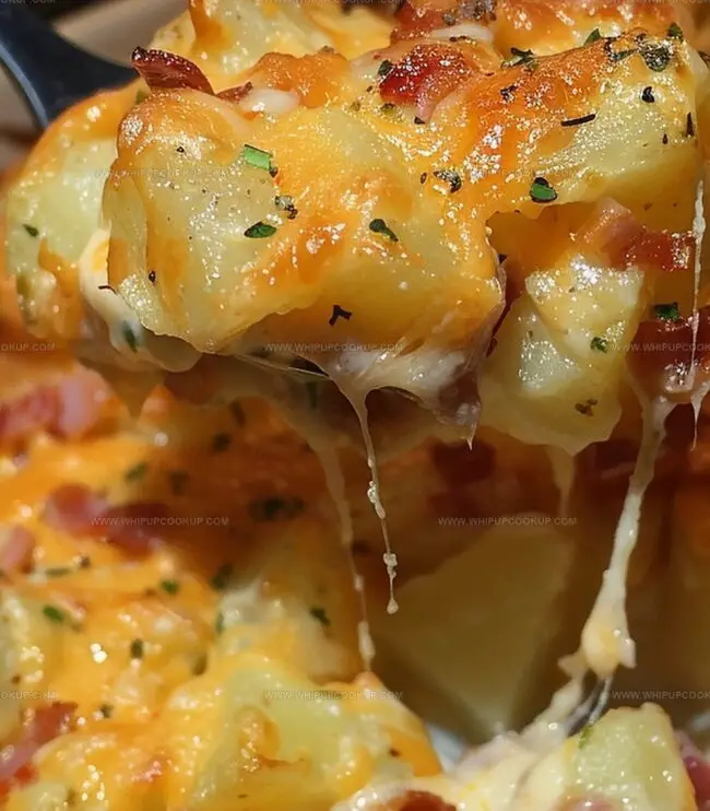 - Serve immediately, presenting a bubbling, fragrant casserole that showcases the perfect blend of creamy potatoes, melted cheese, and crispy bacon.