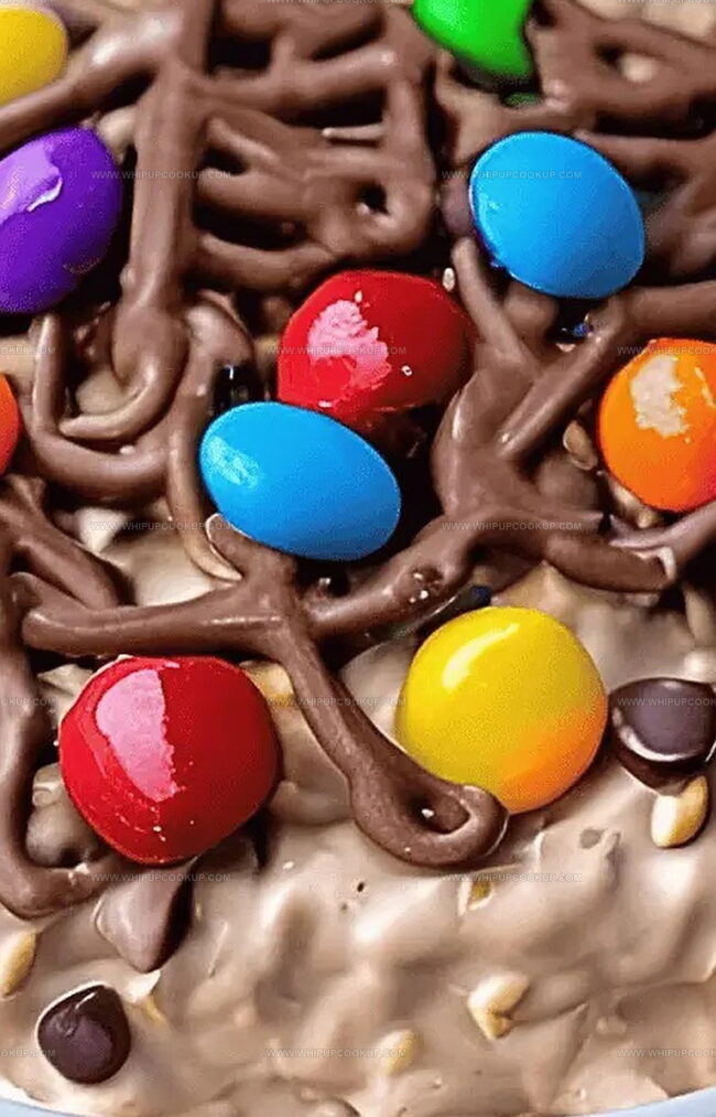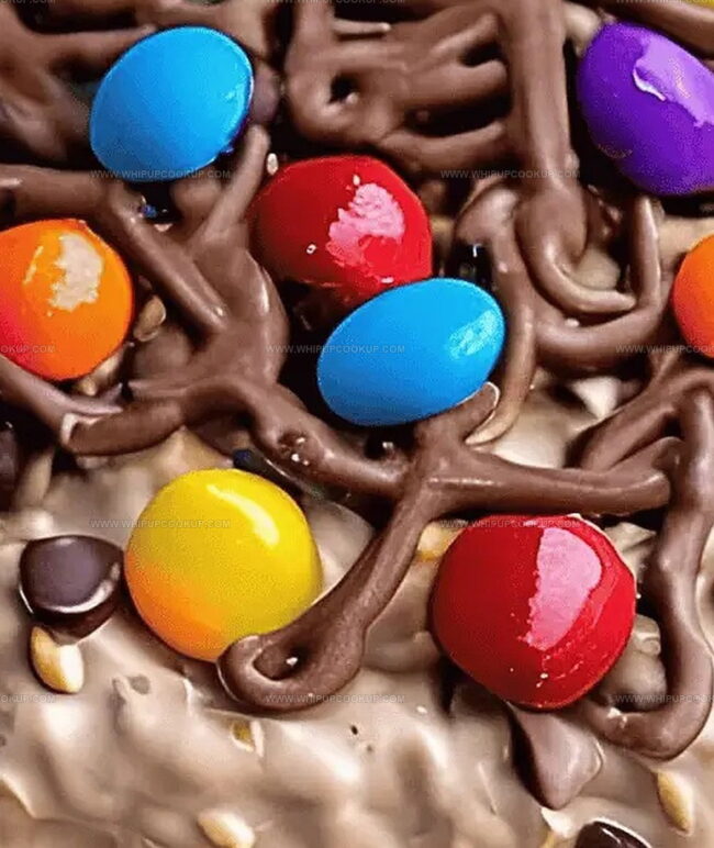 - Delicately fold in mini chocolate chips, standard chocolate chips, and colorful M&Ms, distributing them gently to maintain the dip’s structural integrity.