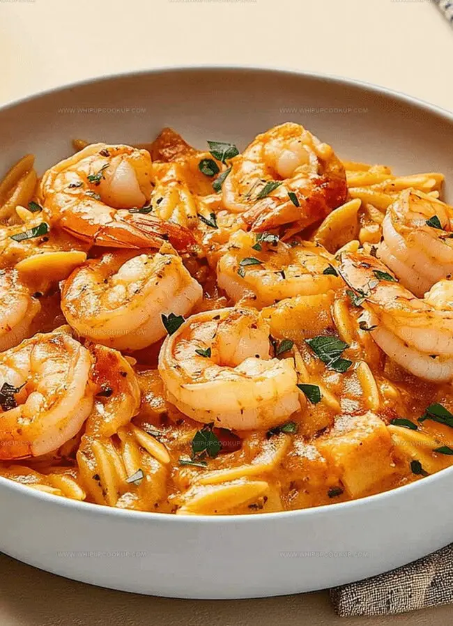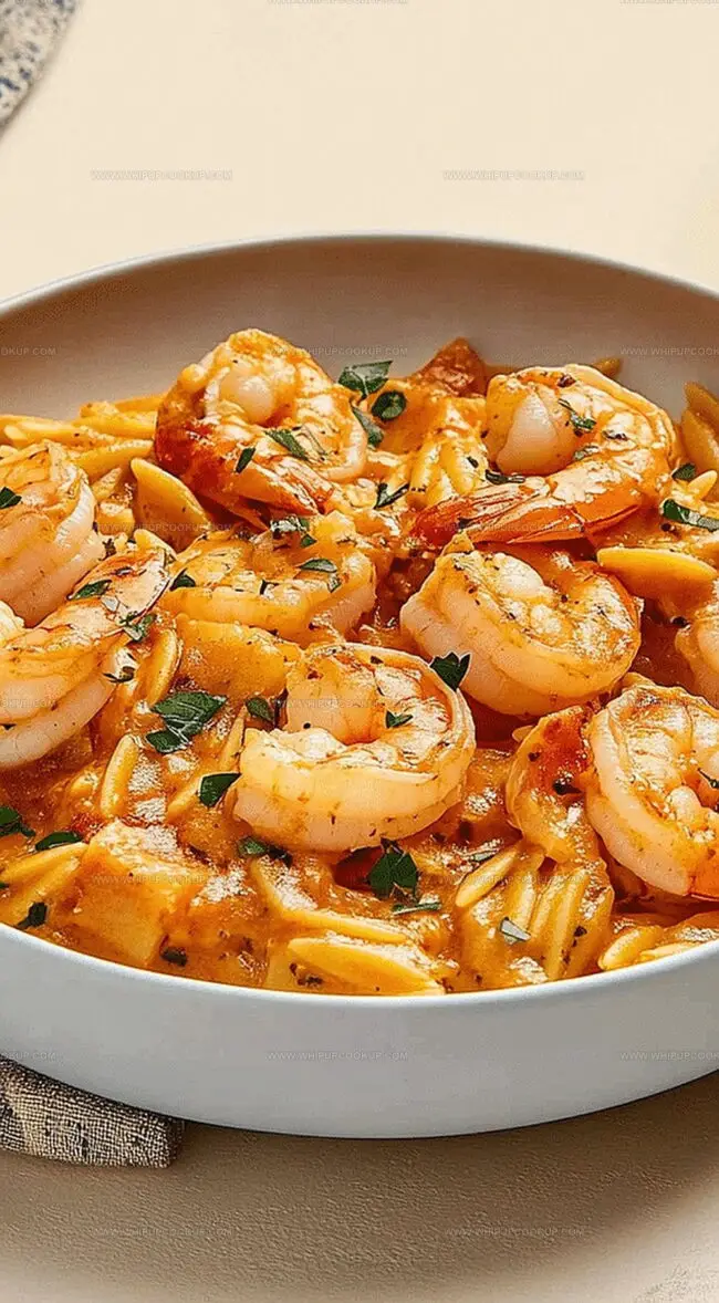 This dreamy dish blends succulent shrimp with tender orzo in a luxurious sauce that melts hearts.