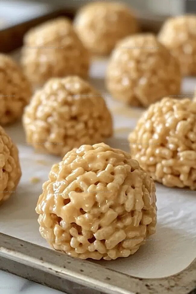 - Once set, retrieve the rice krispie balls and serve at your leisure, savoring the harmonious combination of sweet and nutty flavors.