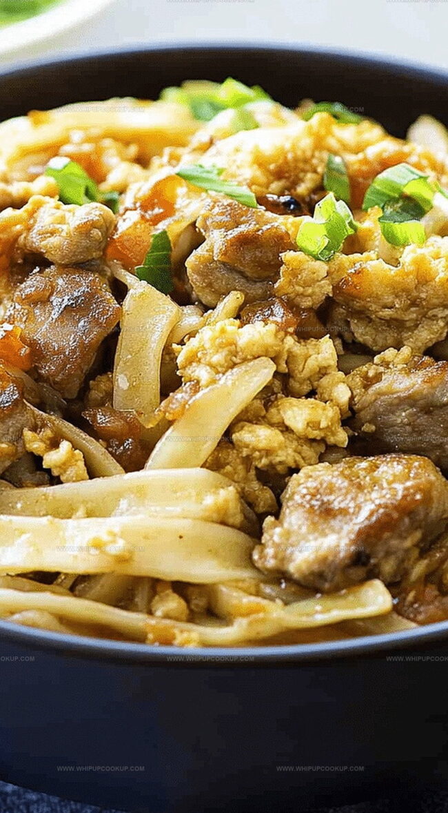 - Gently fold the cooked noodles into the pork mixture, ensuring even distribution of ingredients and sauce.
