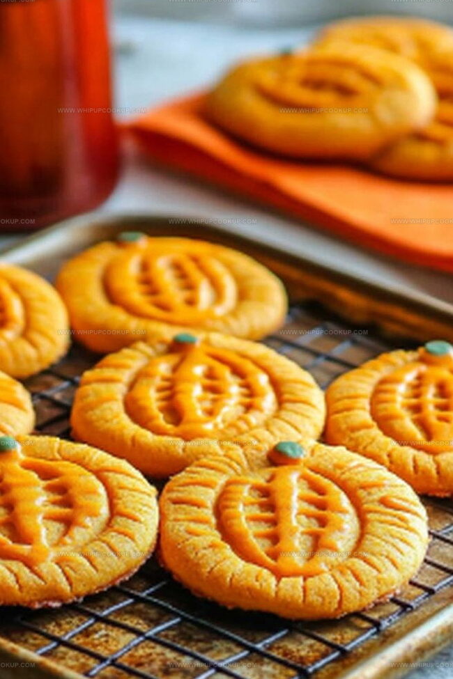 Let the cookies rest on the baking sheet for 5 minutes. Transfer to a wire rack and allow them to cool completely. Get ready to bite into these cute pumpkin-shaped treats!