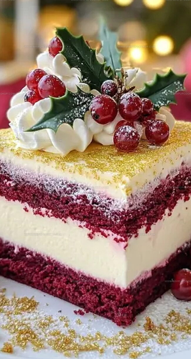 Mixing red velvet magic creates a festive dessert that sparkles with holiday cheer.
