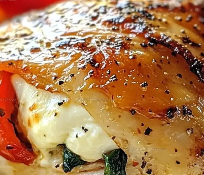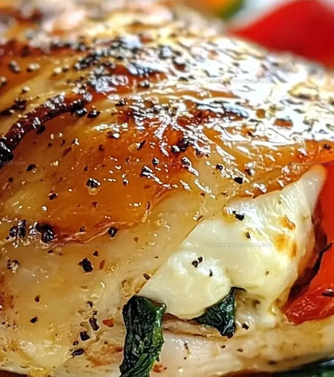 Mediterranean-inspired Roasted Red Pepper, Spinach, and Mozzarella Stuffed Chicken delivers a symphony of flavors that dance across palates. Succulent chicken breasts become irresistible vessels for creamy cheese, earthy spinach, and sweet roasted peppers, promising a delightful meal you won’t soon forget.