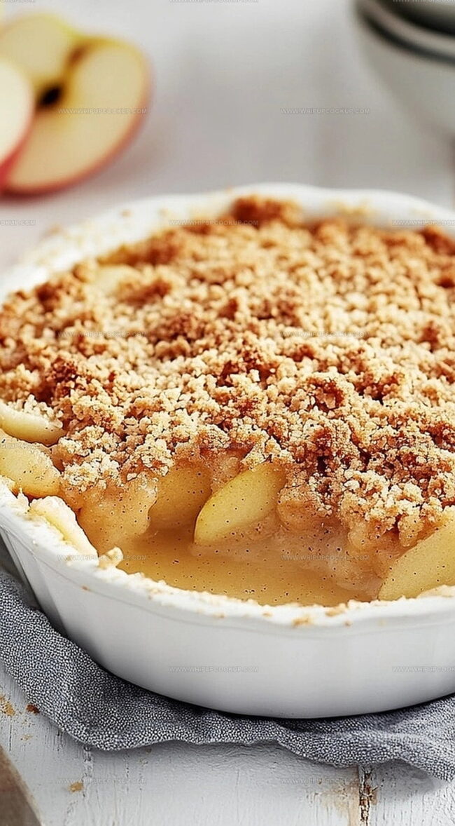 Sweet, tender apples nestled beneath a golden, buttery topping create pure magic on your plate.