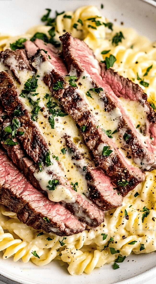 Creamy pasta meets succulent steak in this irresistible Steak Alfredo that promises restaurant-quality dining at home. Parmesan-kissed sauce and perfectly seared beef create a luxurious meal you’ll savor with pure culinary delight.