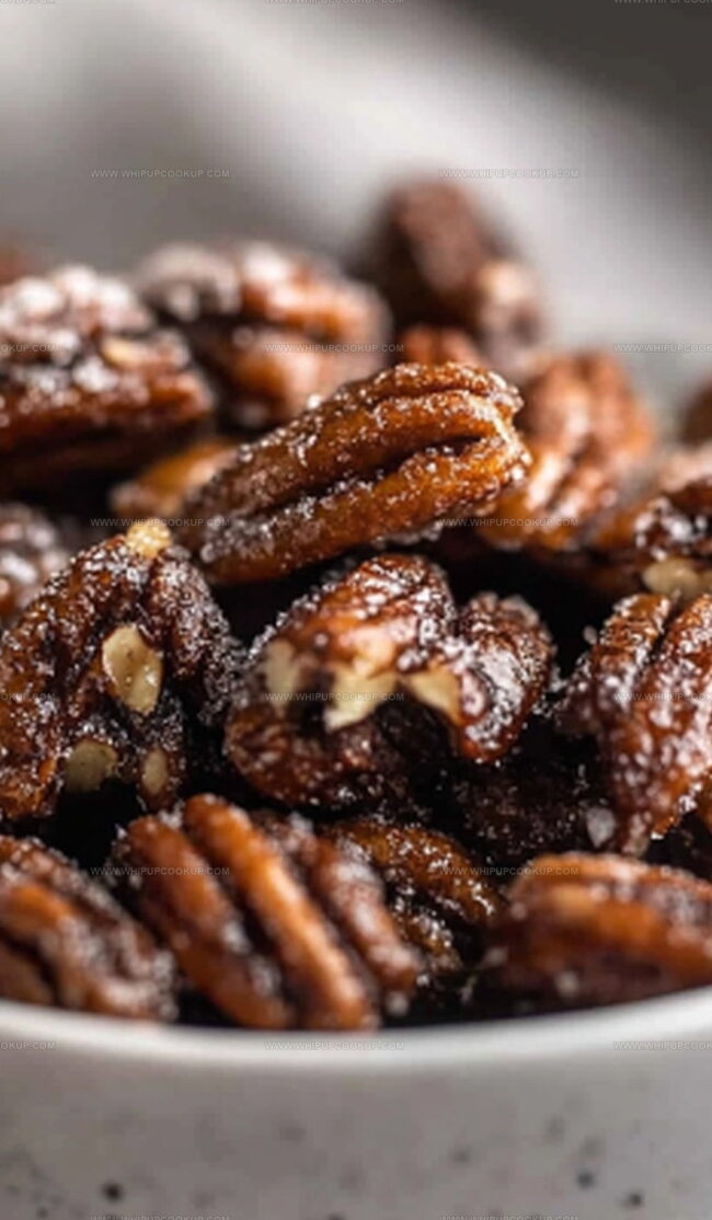 Maple syrup works its magic, coating each pecan with a glossy, irresistible sheen that beckons you closer.